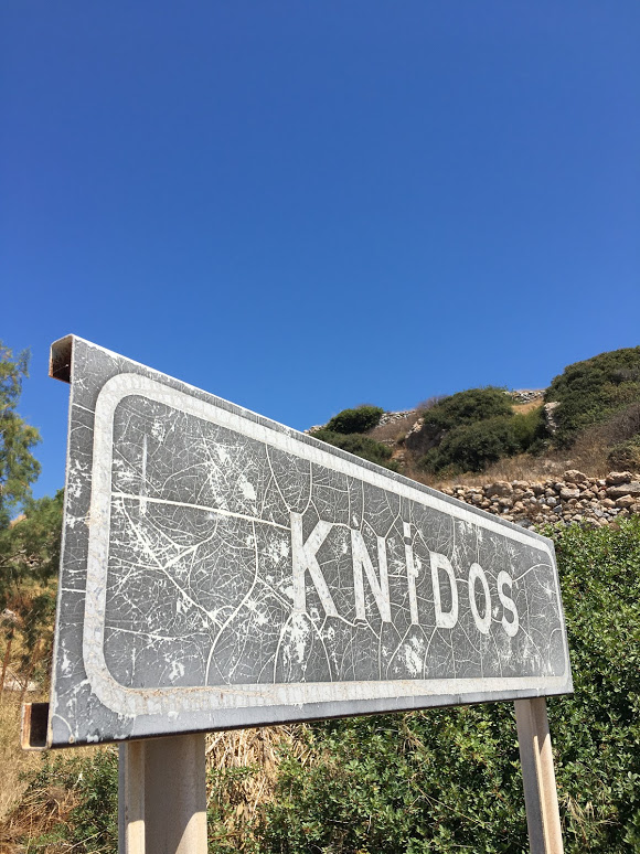 Arnavut kaldırımlı Yazı köyünden geçip kuru ve sıcak güneşin altında Knidos antik kentine, sanki çıkmaz bir sokağa girer gibi aniden giriverdik