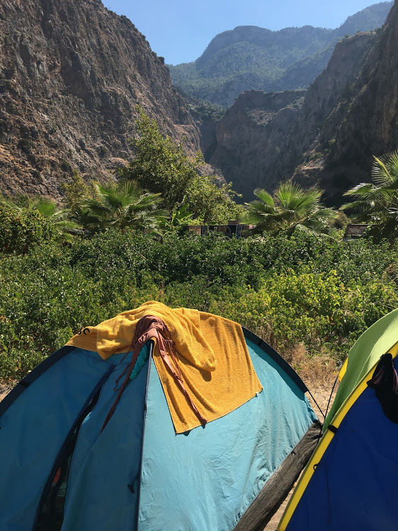 Sabahları 06:00, 06:30 gibi kara sineklerin münasebetsiz öpücükleriyle uyanıyoruz. Güneş üstümüze doğuyor. Faralya’dan yükselip, saat 19:00 a kadar elinden geleni yapıyor. Küçük çadırımızın önünde, iki sünger şiltenin üstünden, uyku tulumlarımıza sarılı halde etrafı kolaçan ediyor, komşuları dikizliyoruz ister istemez. Dışarda uyanmak, yıldızların altında uyumak kadar tuhaf, yabancı, acayip ama büyüleyici bir şey.